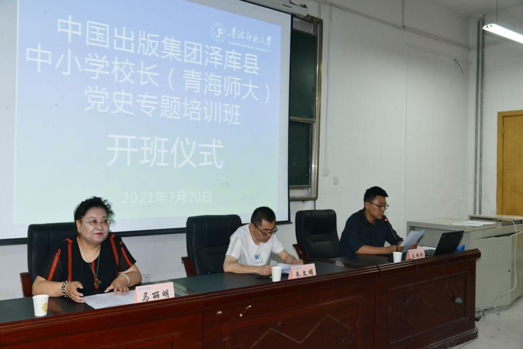 7月20日上午,由青海師范大學(xué)承辦的中國出版集團(tuán)澤庫縣中小學(xué)校長黨史專題培訓(xùn)班在青海師范大學(xué)城西校區(qū)理科樓107教室舉行了開班儀式。澤庫縣委教育工委專職副書記朱文明、青海師范大學(xué)繼續(xù)教育與培訓(xùn)學(xué)院副院長馬麗明、青海師范大學(xué)繼續(xù)教育與培訓(xùn)學(xué)院老師朱明珍以及澤庫縣中小學(xué)校長共40人參加了開班儀式,開班儀式由朱明珍主持。