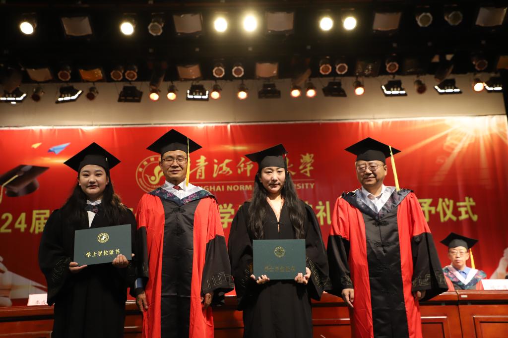 典禮上分別宣讀了關(guān)于準(zhǔn)予畢業(yè)、授予學(xué)位、表彰優(yōu)秀學(xué)生和優(yōu)秀班干部等文件。侯廣彥、李成林分別為優(yōu)秀學(xué)生代表和優(yōu)秀班干部獲得者頒獎(jiǎng)。學(xué)校學(xué)位評(píng)定委員會(huì)委員曹廣超、李合成為2024屆高等學(xué)歷繼續(xù)教育獲得學(xué)士學(xué)位的同學(xué)們行撥穗禮,頒授學(xué)士學(xué)位證書(shū)。