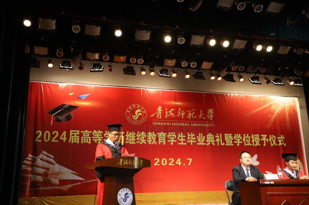 7月23日上午,青海師范大學(xué)2024屆高等學(xué)歷繼續(xù)教育學(xué)生畢業(yè)典禮暨學(xué)位授予儀式在城西校區(qū)演藝廳隆重舉行。畢業(yè)典禮在雄壯的國(guó)歌聲中拉開(kāi)帷幕。