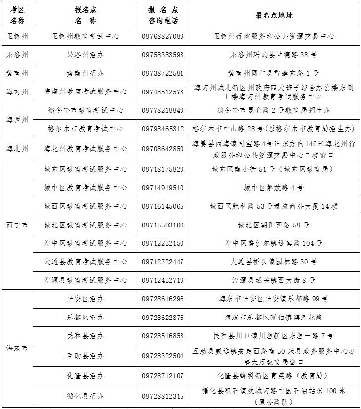 七、青海省成人高考考區(qū)及報(bào)名點(diǎn)信息表
