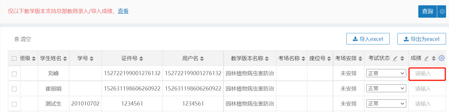 第一種:在下方學(xué)生列表中直接在成績欄內(nèi)輸入成績即可,輸入后自動保存。