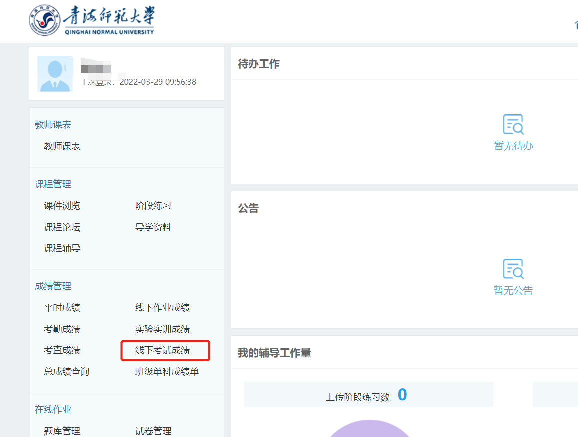 菜單位置:成績管理 – 線下考試成績