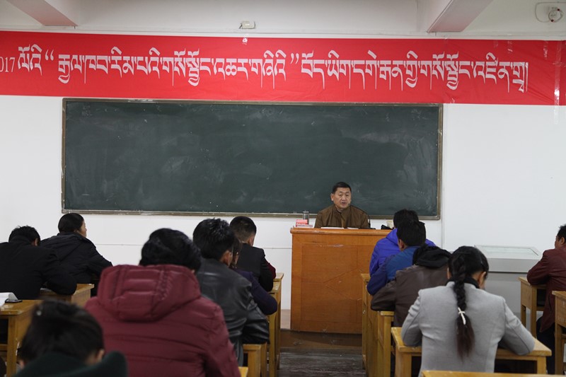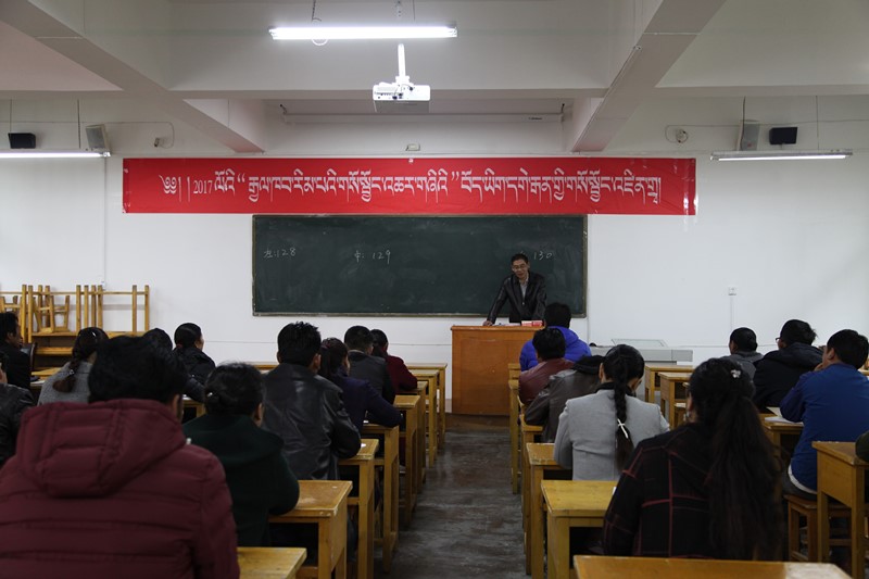 2017年10月11日上午,由我校舉辦的2017年“國培計劃”藏文教師培訓(xùn)班開班典禮在五四校區(qū)舉行。青海師范大學(xué)成人教育學(xué)院副院長扎洛教授、民族師范學(xué)院藏文系主任多旦教授、索南東主教授等相關(guān)領(lǐng)導(dǎo)及青海省六州藏區(qū)70多名小學(xué)藏文教師參加了開班典禮。開班典禮由索南東主教授主持。