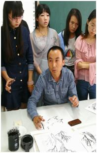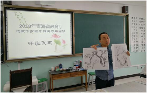在開班儀式上,邀請到青海師范大學(xué)美術(shù)學(xué)院冶珍國教授授課指導(dǎo)。冶珍國老師是國畫專業(yè)出身,尤其在山水畫方面有著非常豐富的經(jīng)驗(yàn)。他詳盡的解析,簡練的歸納,熟練的示范讓老師們贊不絕口。他用簡單易懂、深入淺出的方法為參訓(xùn)教師講解了國畫山水中各種各樣的樹的枝干及葉片的繪畫方法。他畫功精湛,和藹可親,創(chuàng)作風(fēng)格清雅,不時地引起陣陣掌聲。老師們感慨萬千,都認(rèn)為這是一次非常有意義、有效果的技能培訓(xùn),希望以后還能有這樣的機(jī)會不斷提高自己的業(yè)務(wù)水平!